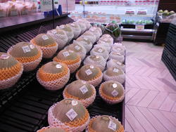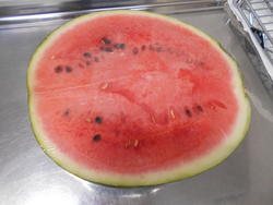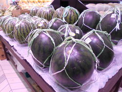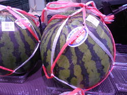 熊本県産、鳥取県産のとっても大きな西瓜が並んでますよ。
