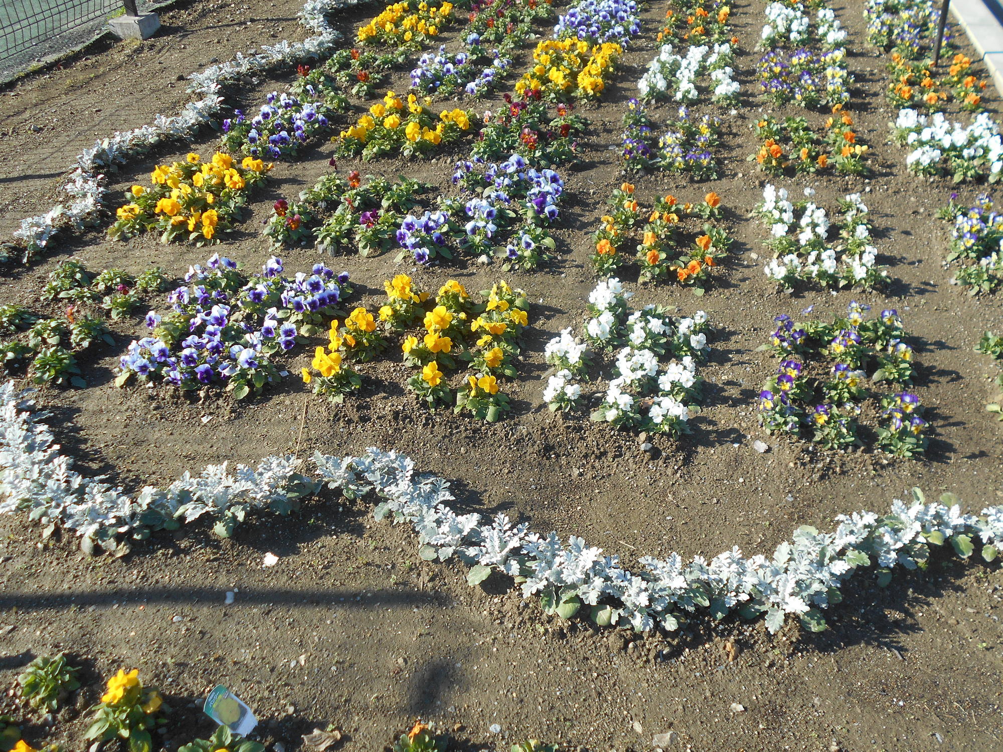 一株一株心を込めて一般駐車場の花壇に、パンジーやビオラの苗を、植えてくださいました。