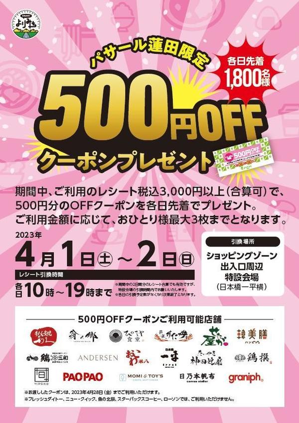 『パサール蓮田限定 500円OFFクーポンプレゼント』
