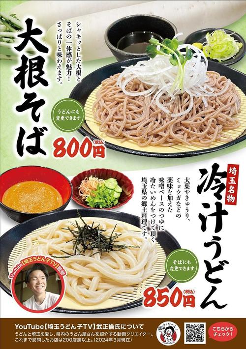 【翁の郷】さわやかな新メニューが登場!! Pasar蓮田 フードコート 【翁の郷】 新メニューが登場!! 気温も上がってきて、これから暑い季節を迎えますね! そんな暑い時期にオススメの爽やかメニューが登場しました☆ 大根そば(800円税込) 冷汁うどん(850円税込) ※どちらも【うどん・そば】からお選びいただけます。 ぜひご賞味くださいませ!!