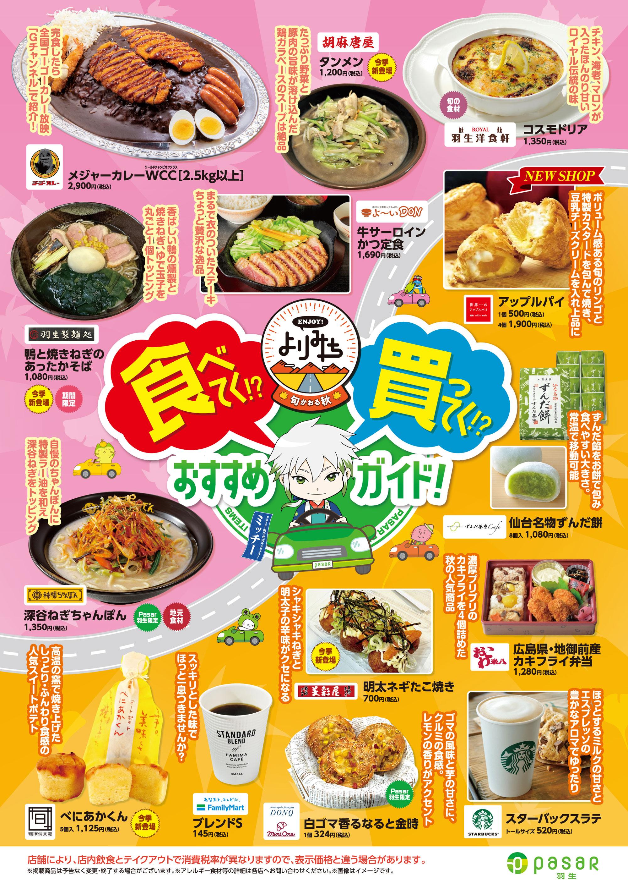 新発売!しっとり食感のずんだフィナンシェ!! 2025.11.28 旬撰倶楽部より 雪彩リングバームのご紹介!! 2025.11.28 旬撰倶楽部より 日出味噌醸造元の商品入荷です! 2025.11.20 【超めでたい!】16周年アニバーサリー大抽選会やるよ! 2025.11.18 一気に寒くなってまいりました。羽生製麺処からおしらせです!! 2025.11.13 【集合~】世界キャラクターさみっとin羽生 のお知らせ 2025.11.10 【またやるよ!】新米すくい取りイベント開催のお知らせ♪ 2025.11.04 旬撰倶楽部より くらづくり最中福蔵のご紹介!! 2025.11.01 冬季限定!ふわふわホカホカのずんだスープ! 2025.10.24 美彩屋より 怪獣レモンミンチカツ!? どんなの? 2025.10.20 旬撰倶楽部より 春華堂より新商品が入荷しました~!! 2025.10.13 やっと秋めいてきました「鴨と焼きねぎのあったかそば」のご案内です。 2025.10.08 胡麻唐屋より 新商品!! タンメン登場!! 2025.09.09 まだまだ暑い日が続きますが・・・ 2025.09.08 【旬かおる】Pasar羽生 秋のおすすめメニュー 2025.09.01 当店人気No.1!ずんだシェイク!! 2025.08.09 5のつく日はゴーゴーデー★ 2025.08.05 ワールドチャンピオンクラス!!! 2025.08.01 「世界一のアップルパイ 鎌倉 ミレメーレ」OPEN! 2025.08.01 夏のおでかけに!食べきりサイズの「ずんだ餅ぷち」 2025.07.28 【7/15~9/23まで!】たまごっちハイウェイスタンプラリー開催中♪・・・ #51 2025.07.17 【力みなぎる】Pasar羽生 夏のおすすめメニュー 2025.06.01 うな丼 始めました! 2025.05.29 【きてね】久々に抽選会を開催するよ・・・ #49 2025.05.20 5月5日はゴーゴーバースデー! 2025.05.04 テイクアウトメニューにとうとう新しい仲間が!! 2025.04.11 【みてね】ステキなお客さまがよりみちしてくれたよ・・・ #48 2025.03.24 【胸おどる】Pasar羽生 春のおすすめメニュー 2025.03.01 【謹賀新年】今年もよろしくお願いします・・・ #44 2025.01.01 【きてね】今年最後のイベントを開催するよ・・・ #43 2024.12.17 【心あたたまる】Pasar羽生 冬のおすすめメニュー 2024.12.01 【はにゅはにゅ】世界キャラクターさみっとに参加したよ ・・・ #42 2024.11.27 【集合~】世界キャラクターさみっとに初参戦するよ ・・・ #41 2024.11.20 【radikoから聴いてね】ラジオで紹介されたよ ・・・ #40 2024.11.19 【楽しすぎた】みんなにお祝いしてもらったよ・・・ #39 2024.11.18 【嬉】似顔絵ありがとう!・・・ #38 2024.11.18 【思い立ったが吉日】Pasar羽生15周年記念プレゼントキャンペーン開催中!!・・・ #36 2024.10.19 【集合】キャラクターキャラバンやったよ・・・ #35 2024.10.13 【祝】羽生市公認PR大使に就任しました!・・・ #34 2024.10.02 【涼しい場所で】お楽しみ抽選会やります!・・・ #33 2024.09.18 【旬かおる】Pasar羽生 秋のおすすめメニュー 2024.09.01 【先輩方と】カウントダウンイベントでの2ショット・・・ #32 2024.08.21 【デビュー戦】カウントダウンイベントに参加したよ・・・ #31 2024.08.13 【!注目!】カウントダウンイベントに参加するよ・・・ #30 2024.08.08 【暑いね】ムートくんが初めて来たよ・・・ #29 2024.07.31 【来てね】今週末は抽選会だよ!!・・・ #28 2024.07.17 【ここらで1回】オフショット祭り 後編・・・ #27 2024.07.06 【7/1~8/31まで!】はぴだんぶいハイウェイスタンプラリー開催中!! 2024.07.01 【ここらで1回】オフショット祭り 前編・・・ #26 2024.06.22 新商品 ずんだバタふく 2024.06.18 【力みなぎる】Pasar羽生 夏のおすすめメニュー 2024.06.01 【感謝】羽生市にもご協力いただきました!!・・・ #25 2024.05.18 5月5日はゴーゴーバースデー☆彡 2024.05.05 復カツカレー!復活!! 2024.05.01 本気で休んでいたので、今日からまた頑張ります!・・・ #24 2024.04.27 ぽて父さん、また遊びに来てくれるかな?・・・ #23 2024.03.29 【3月21日(木)開催】ありがとうミニクロワッサン40周年!! 2024.03.19 【ぽて父さんに重ね捺しスタンプ】3月はたくさん詰め込みました!・・・ #22 2024.03.13 【謎の伏線あり】半年間続けていたことがありました ・・・ #21 2024.03.09 【胸おどる】Pasar羽生 春のおすすめメニュー 2024.03.01 【radikoから聴いてね】ラジオの生中継があったよ ・・・ #20 2024.02.24 【今週末!!】ん?この抽選会、ひと味違うな ・・・ #19 2024.02.23 【ありがとう】キャラクターキャラバンやったよ ・・・ #18 2024.02.13 【全員集合!!】キャラクターキャラバンをやるよ ・・・ #17 2024.02.07 ふわふわずんだスープ 新登場です!!! 2024.02.02 【映える写真!?】自慢だけさせてください(笑) ・・・ #16 2024.01.26 ずんだシェイク・エクセラショコラ 新登場です!!! 2024.01.20 【きてね】2週連続イベントやるよ!! ・・・ #15 2024.01.17 【くる年】はじめまして2024年!! ・・・ #13 2024.01.01 【ゆく年】2023年さようなら!! ・・・ #12 2023.12.31 お土産に仙台名物ずんだ餅 おすすめです! 2023.12.28 【きてね】今年最後のイベントやるよ ・・・ #10 2023.12.20 食事の合図は「いただきます」 なら、走る時は? ・・・ #9 2023.12.08 クリスマスまでの限定販売!ずんだ白雪ムーミンカップ! 2023.12.06 毎月5の付く日はゴーゴーデー!そして12/15(金)はなんと!!! 2023.12.06 毎月5の付く日はゴーゴーデー!そして12/5(火)は