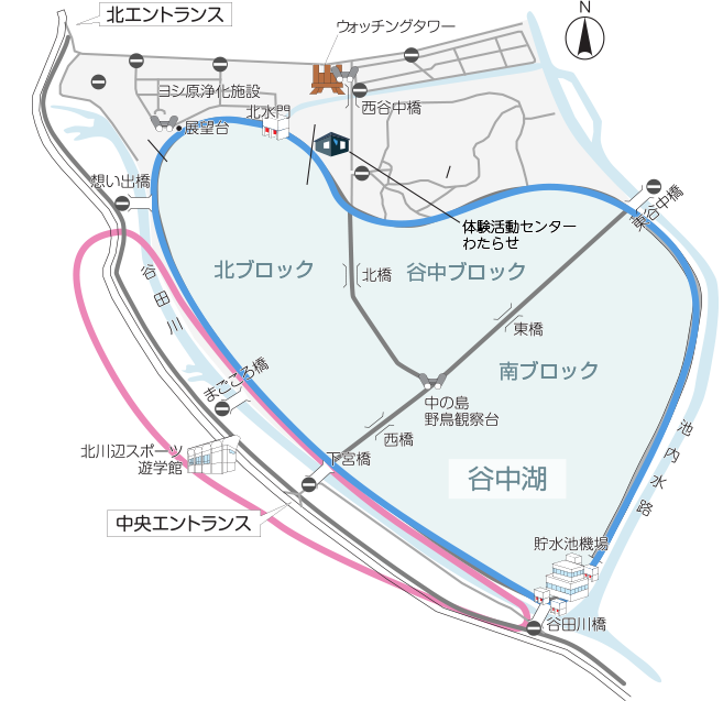 北ブロック:多目的に一般利用できます。ウィンドサーフィンやカヌーなど。(釣りは禁止です)