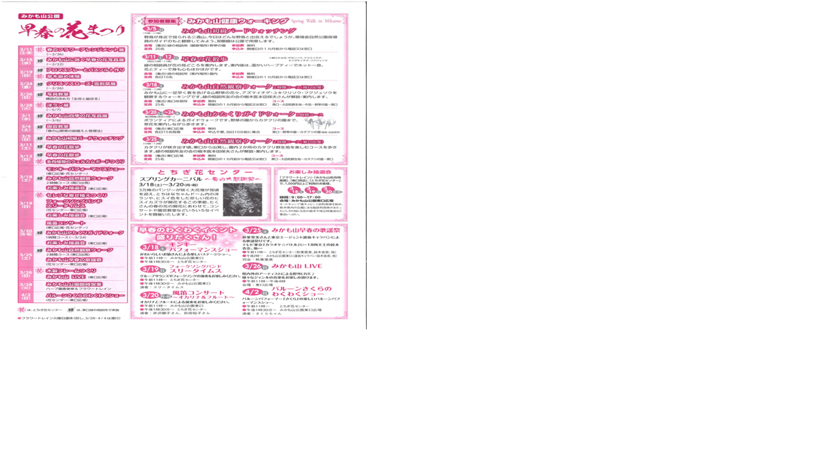 また、5月上旬まで「佐野スプリングフラワ-フェスティバル2017」を開催し、かたくりの里のカタクリのほかにも、梅林公園の梅、城山公園の桜、唐澤山神社のツツジなど、佐野市内の各所で春の訪れを感じることができます。