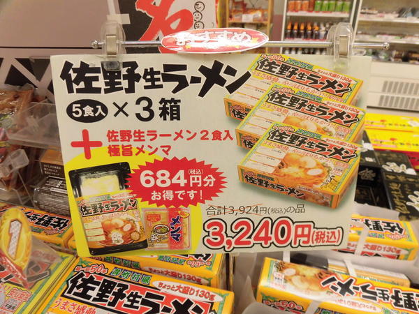 (右)佐野生ラーメン5食入り×3箱(+佐野生ラーメン2食入りと極旨メンマ付き) 3,240円(税込み)