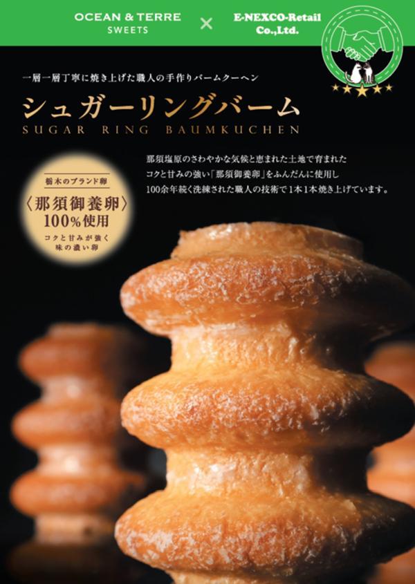 「OCEAN&TERRE SWEETS」とコラボして誕生した店舗限定販売商品『シュガーリングバーム』。「那須御用卵」を100%使用し、職人が丁寧に焼き上げた、店舗一押しのバームです。 1,296円(税込)