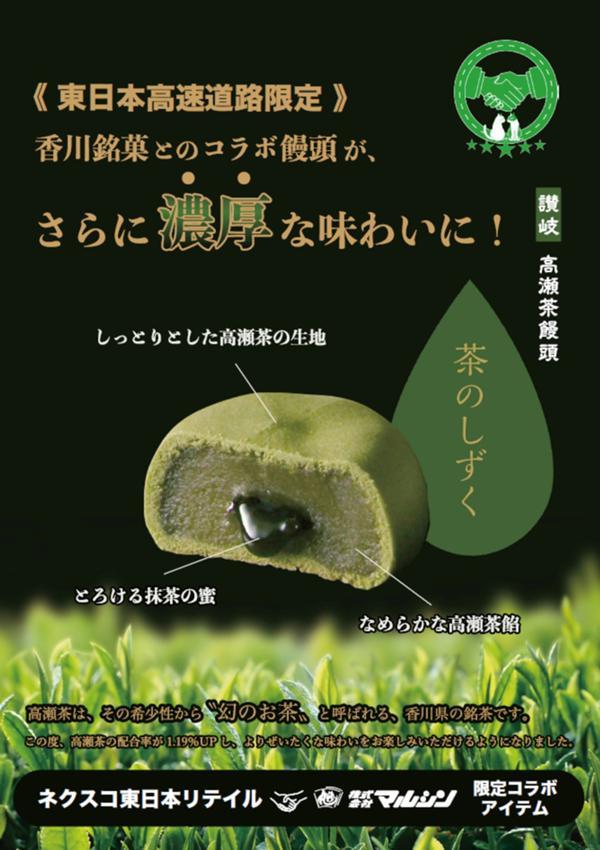 香川県の菓子メーカー「㈱マルシン」とコラボして誕生した店舗限定販売商品『茶のしずく』希少な高瀬茶の一番茶を100%使用した、「しっとり」「なめらか」「とろける蜜」が特徴の商品です。。 1,782円(税込)
