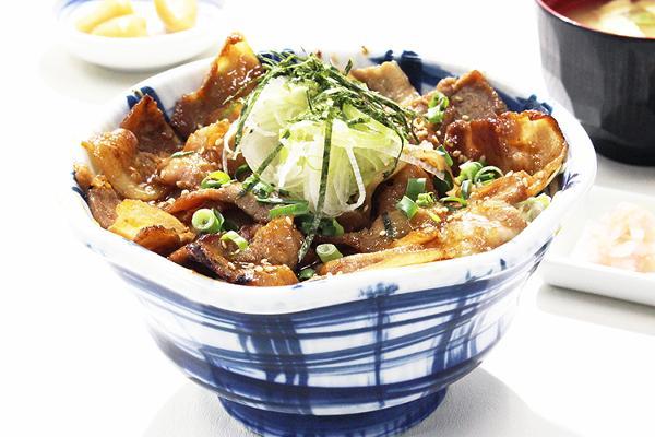 柔らかく脂の甘さが特徴の栃木のブランド豚「那須三元豚」を焼肉風に焼き上げ、宇都宮市産の「コシヒカリ」のご飯の上に乗せたシンプルな豚丼。 地元のブランド柚子「宮ゆず」と「岩下の新生姜」、日光に伝わる伝統の味「からかんべぇ」、栃木ならではの3種類のトッピングで“味変”も楽しめます。 1,500円(税込)