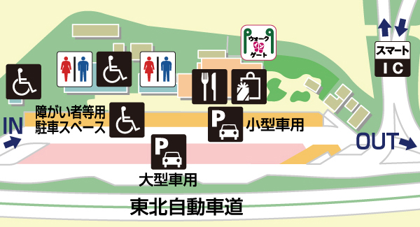 矢板北PA・下りでご利用いただける、各種施設・サービスのご紹介です。