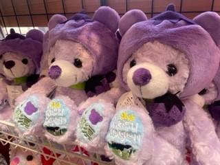 2つめがこちら、那須高原SAの『那須』と『茄子』をかけた茄子帽子のクマちゃんです*:゚+