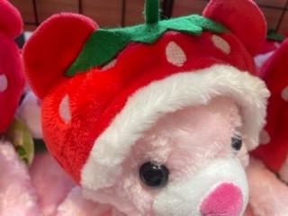 1つ目がこちら、淡いピンク色のいちごを被ったクマちゃんです*:゚+