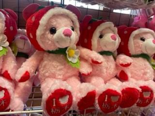 1つ目がこちら、淡いピンク色のいちごを被ったクマちゃんです*:゚+