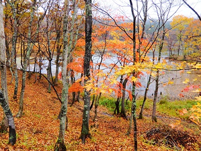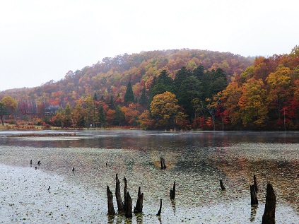 なかでも秋の紅葉は絶景です。観音沼を1周できる道路があり散策することもできます。
