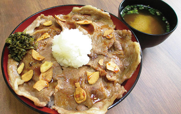 地元産の豚をにんにくと一緒に焼いたボリュームたっぷりのこだわり丼。お肉を食べたい方にオススメ。