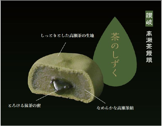 希少性から幻のお茶と言われる「香川県産高瀬茶の一番茶100%」を使用した、抹茶蜜入りのお饅頭で