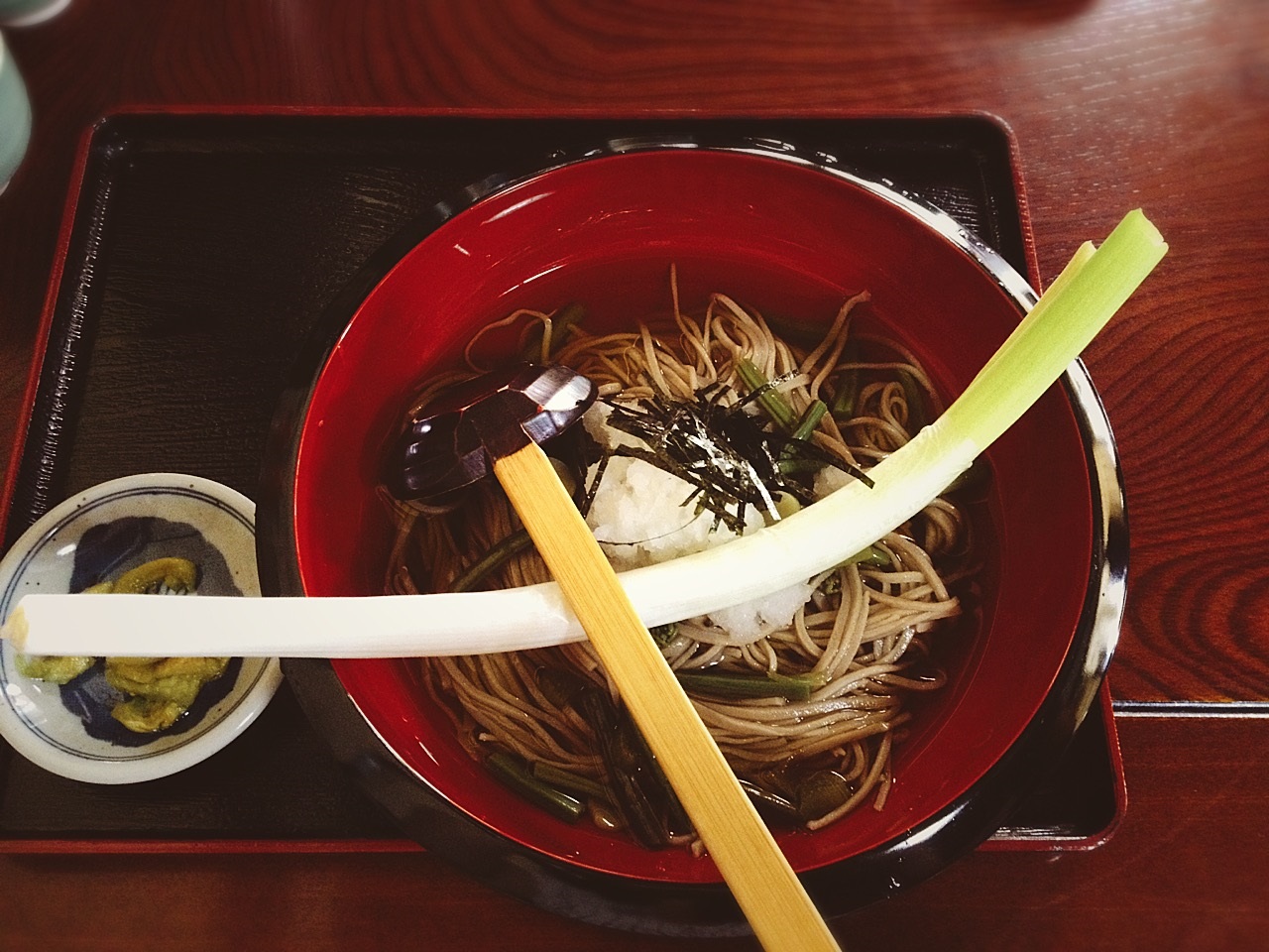 名物の高遠そばはネギを箸代わりにして食べるのですが・・・