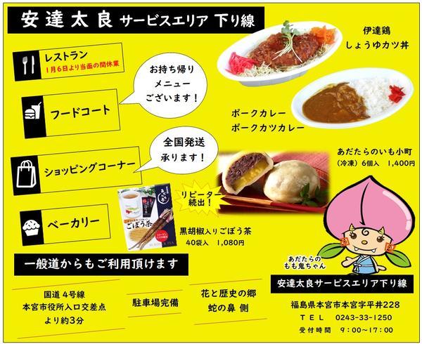 安達太良サービスエリア下り線(仙台・山形方面)フードコートの村田です。