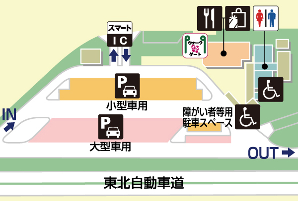 福島松川PA・上りでご利用いただける、各種施設・サービスのご紹介です。
