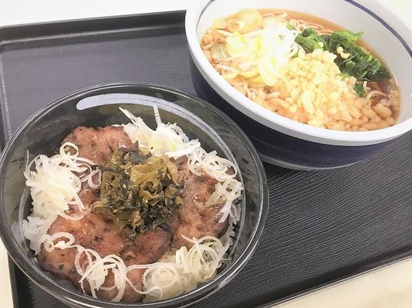 長者原名物たん塩丼ミニサイズと揚げ玉入りの花そばのお得なセットメニューです。