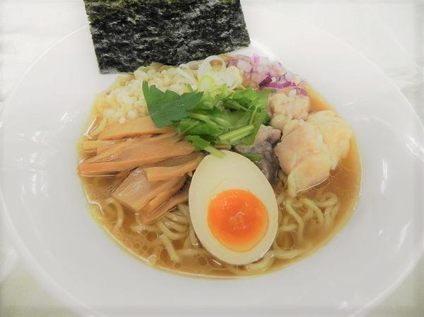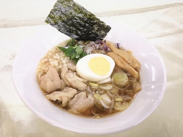 つるんとした食感でジューシーな鶏肉がゴロゴロ入り、鶏ガラスープ、鶏油と鶏の旨みを存分に味わえるラーメンです。具材の紫玉ネギもシャキシャキとして、いいアクセントになっています。