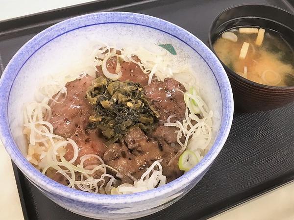 直火焼きの牛タンに、当店自慢の独自に味付けした「高菜漬」と特製たれで仕上げたスタミナ丼。柔らかく香ばしい牛たんの食感にピリッと辛味のきいた高菜漬けの相性が抜群です。
