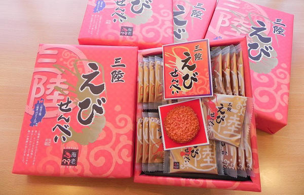 三陸産芝エビと三陸産の塩を使用。パリパリ&サクサクっとした食感と香ばしい海老の風味が楽しめるせんべいです。
