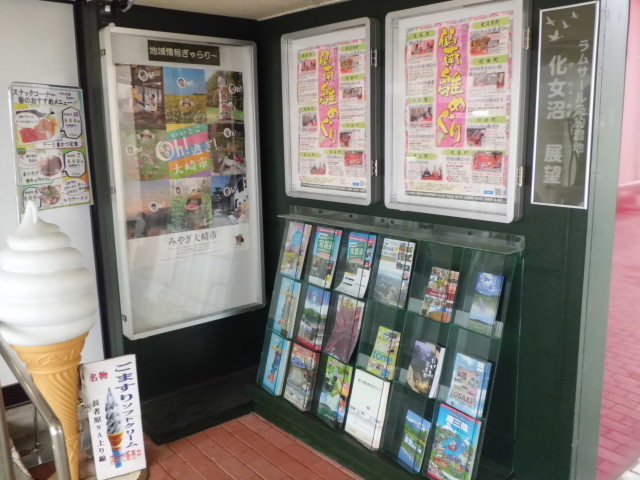 上り線には「地域ぎゃらりー」コーナーがあり、パンフレットを豊富に用意しております。