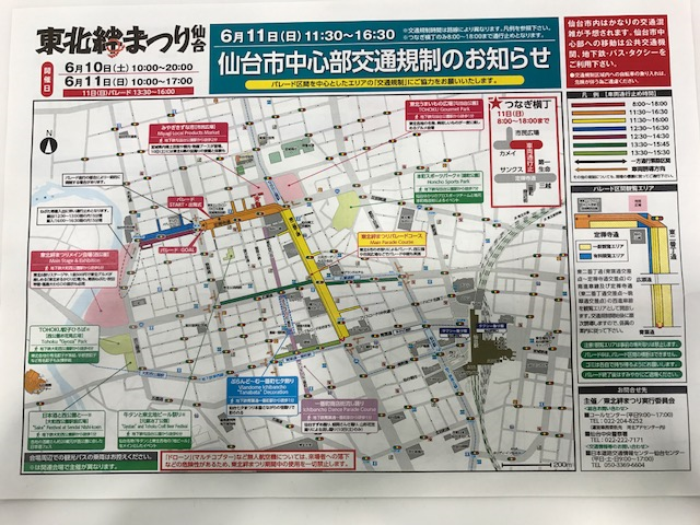 ※6月11日(日)はパレードにつき、仙台市内中心部は大規模な交通規制が