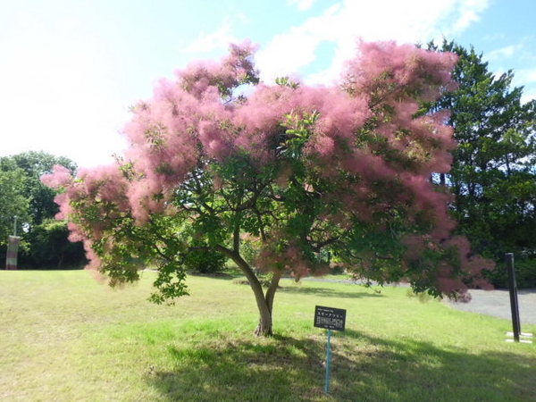 展望広場へ向かう途中、綺麗な花の通路を進むと正面にスモークツリーがあります。