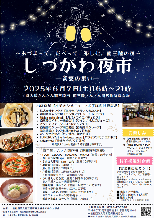 南三陸さんさん商店街が夜間特別営業で楽しめ、お子様向け販売品の出店もありますよ!