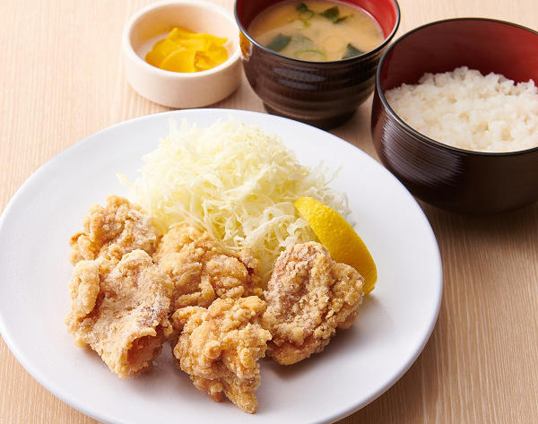 岩手県産南部どり使用の、外はカリッと中はジューシーな唐揚げの定食950円(税込)