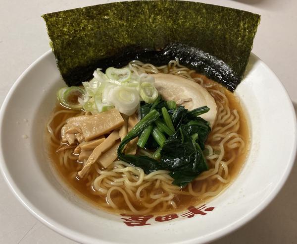 スープを「あごだし」「鶏がら」からお好みで選べます。トッピングはチャーシュー、大きな海苔、メンマ等シンプルですが、リピーターの多い自慢のメニューです。