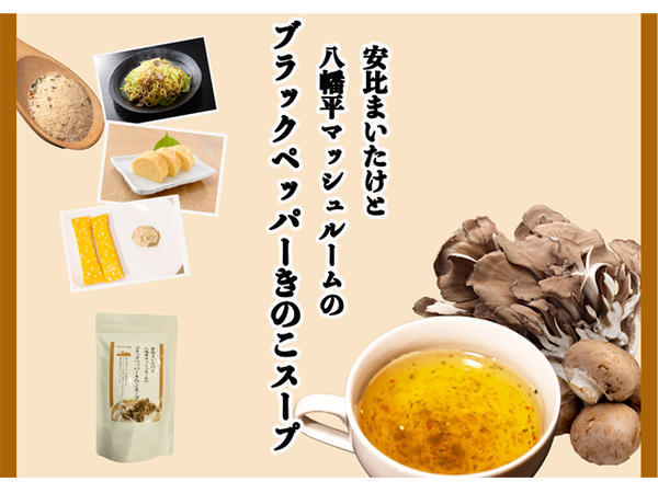 地元特産の安比まいたけと当エリアのご近所さんで栽培された八幡平マッシュルームを使用してスパイシーな味と香りに仕上げた風味豊かなスープです!各種お料理の下味、隠し味にもご利用いただけます。岩手山サービスエリア下り線だけのオリジナル限定商品で販売開始から1年間で約2万個の販売実績を誇る人気商品です!!