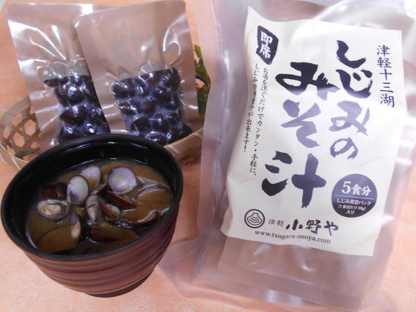 青森県つがる市の十三湖産「しじみ貝」を使用した、しじみと味噌がセットになった即席みそ汁です。