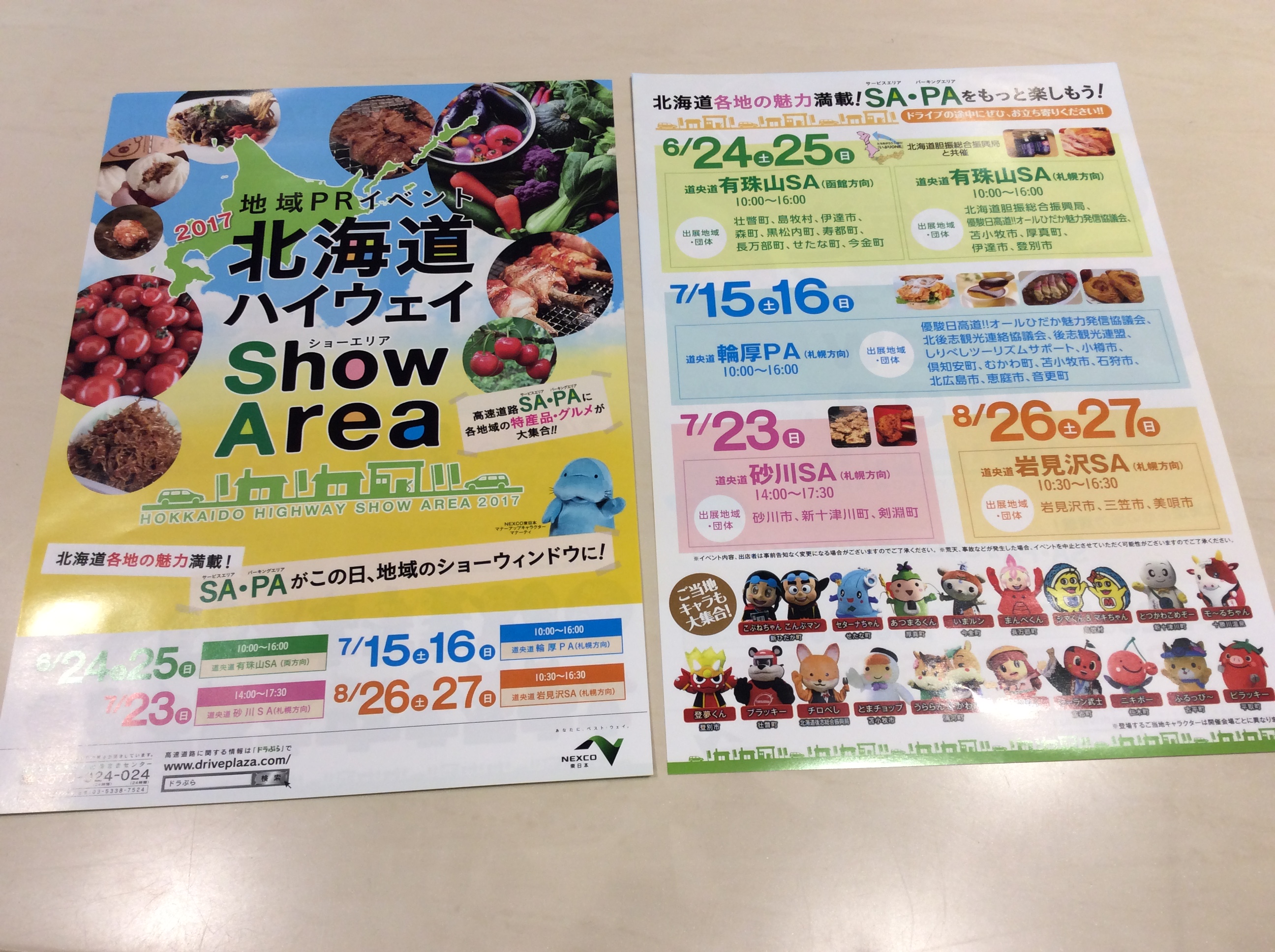 輪厚PA、砂川SA,岩見沢SAでの開催日程が一覧になったものを配布中です!