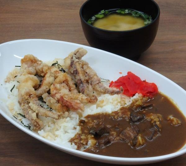 当店看板メニュー「いかげそ丼」とビーフカレーを合わせちゃいました
