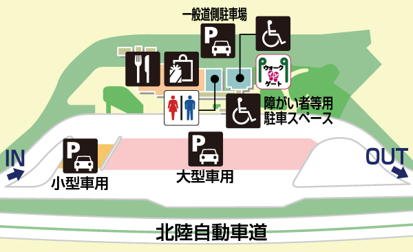 越中境PA・上りでご利用いただける、各種施設・サービスのご紹介です。