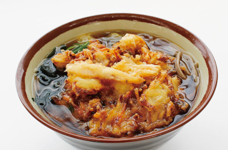 サクサクに揚げた白えびのかき揚げをのせたおそばです。運転で疲れた体と心にしみわたる温かいおつゆとの調和をお楽しみください。