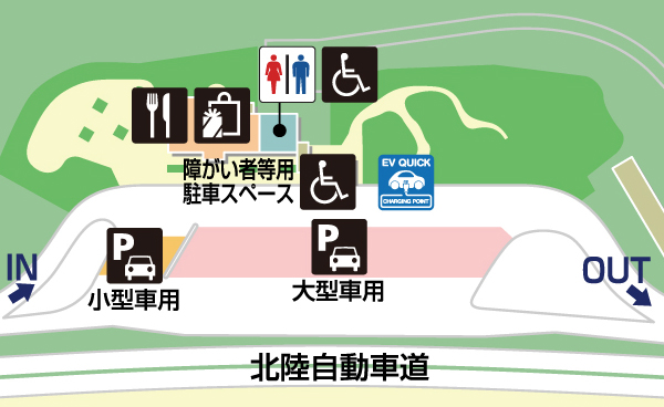 越中境PA・下りでご利用いただける、各種施設・サービスのご紹介です。