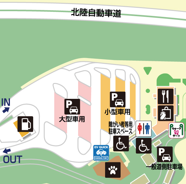 米山SA・上りでご利用いただける、各種施設・サービスのご紹介です。