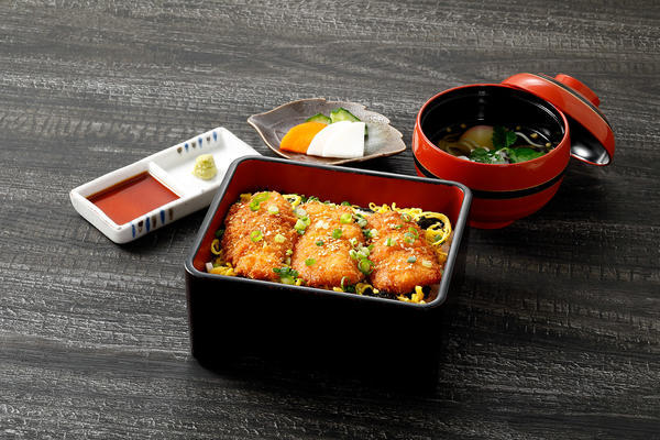 柏崎名物の鯛をオリジナルのソースにくぐらせ たれかつ重に仕立てました