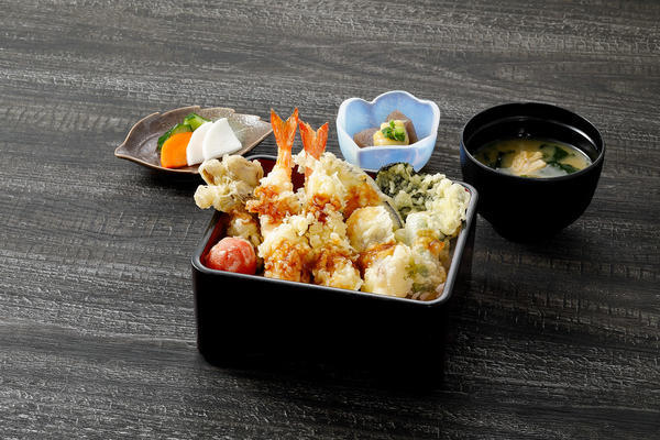 海老・茄子・ししとう・舞茸の天ぷら、小鉢を加えた満足メニューです!