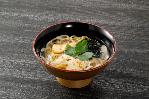 鯛でとった出汁に 鯛のづけ と鯛の香り揚げ をトッピングした鯛やオリジナルのうどん。