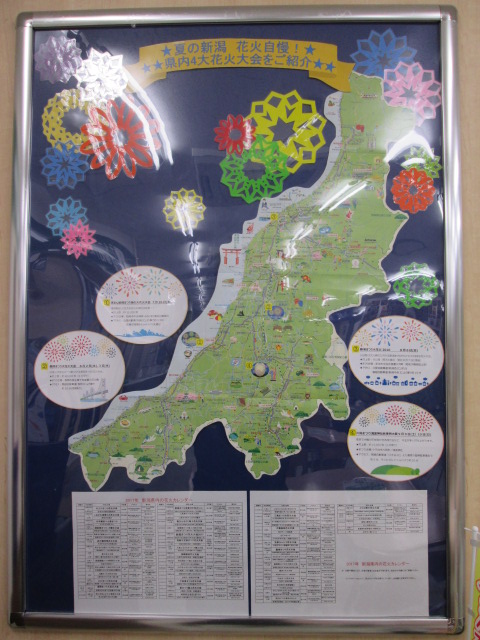 只今、新潟の花火情報を休憩所内に掲示しています。