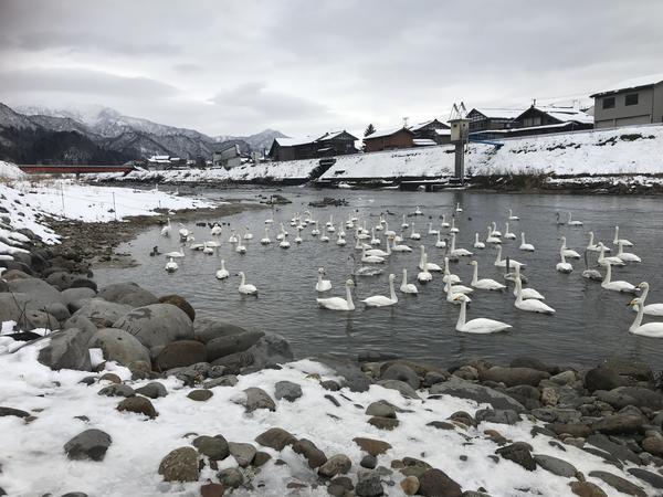 多い年で400羽ほど飛来する白鳥は、近所の方々に大切に保護されています。