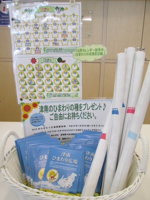 また、黒埼インフォメーションでは7/1~津南町より提供していただいたひまわりの種をプレゼントいたします。(※無くなり次第終了)