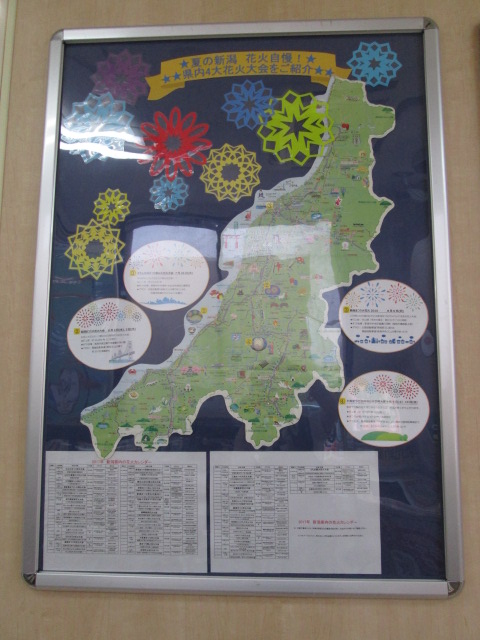 只今、新潟の花火情報を休憩所内に掲示しています。