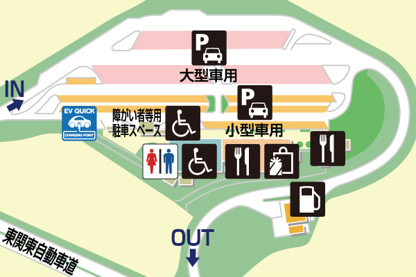 酒々井PA・下りでご利用いただける、各種施設・サービスのご紹介です。