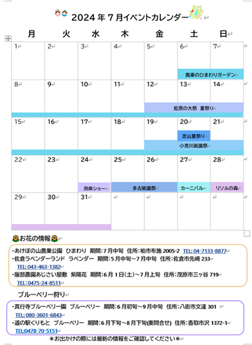 それでは早速、今月の千葉県北部のイベントをご紹介します