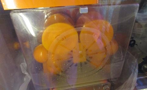 惜しげもなく放り込まれたオレンジたちが、次々と砕かれていきます。