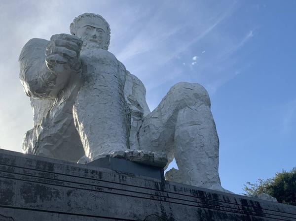 ダイダラボウ像の体内の階段を昇り、手のひらから眺望を楽しめるほか、